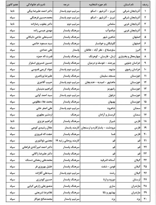 30 سرهنگ و سردار سپاه و نیروی انتظامی که