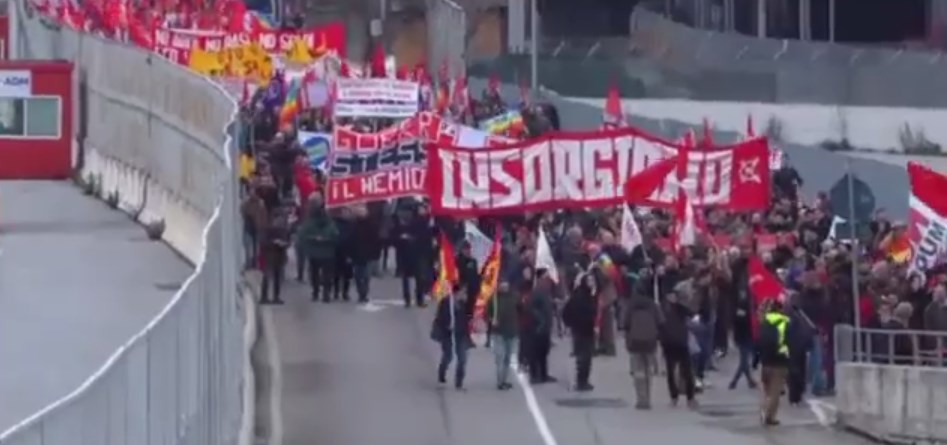 بصورت همزمان گزارش شده که علیه اتحادیه اروپا و ناتو نیز در اکثر شهرهای ایتالیا تظاهرات و راهپیمائی برگزار شده است. از جمله در شهرهای  رم، میلان، ناپل، تورین، فلورانس.